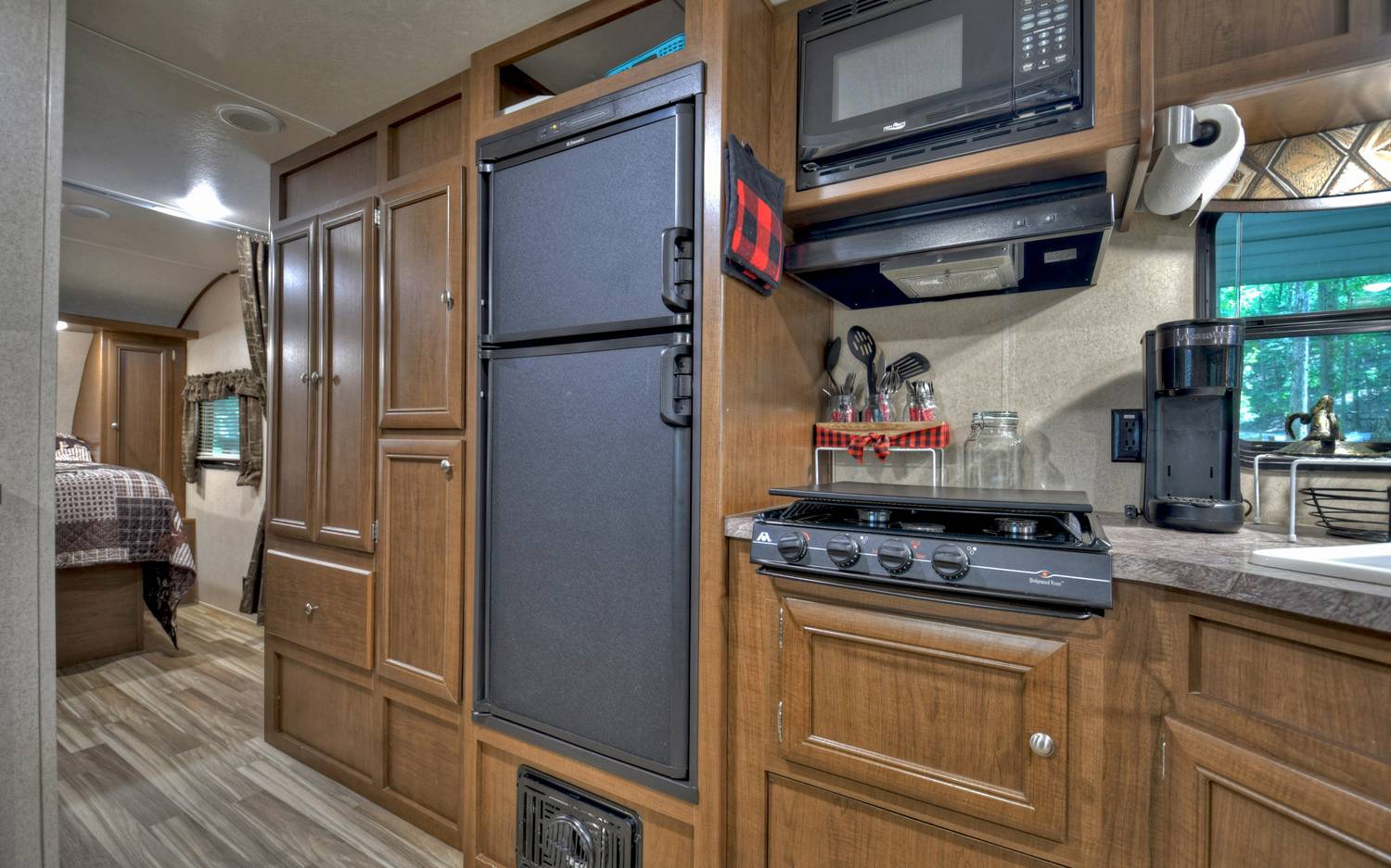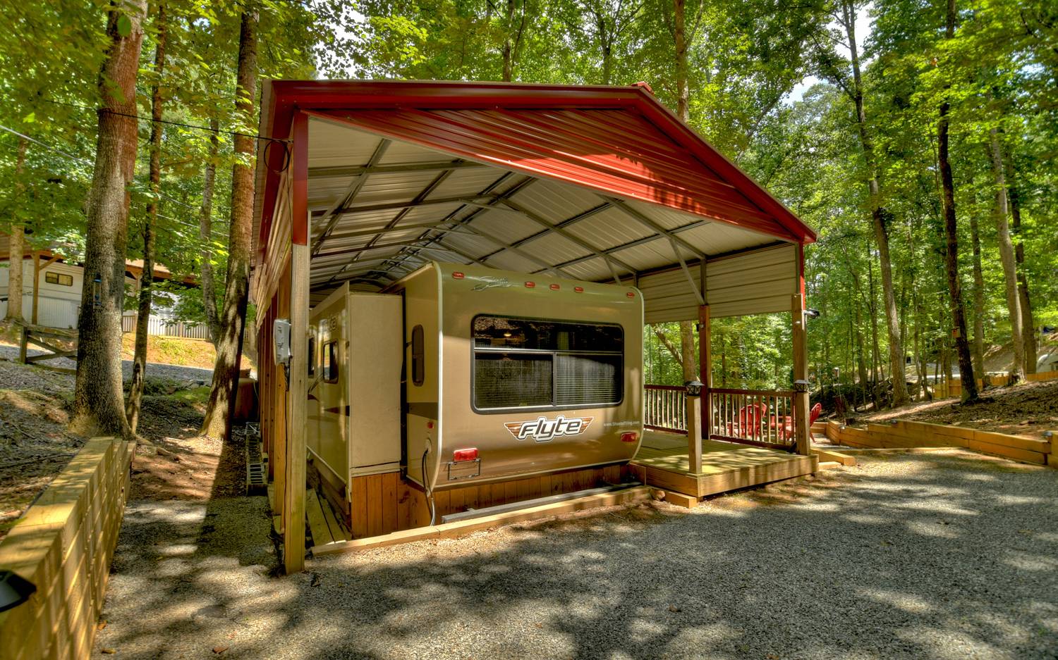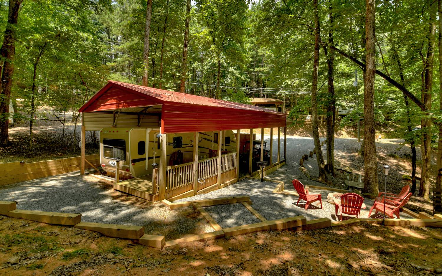 Nestled in the Coosawattee River Resort, this Covered move-in ready 2017 RV is a true marvel. Equipped with a cozy queen bed and an abundance of space, you'll feel right at home from the moment you step inside. Also comes with 2 Ring cameras. Extra added foam insulation to keep you warm on winter evenings! Sale comes with full propane tank! Step outside to discover a beautiful sitting area where you can unwind by the firepit and enjoy the serene surroundings. The deck space provides the perfect spot for al fresco dining or stargazing under the night sky. Explore the great outdoors with ease, discovering hidden trails and breathtaking vistas. Don't miss this rare opportunity to own a versatile property that combines the comfort of a well-appointed RV with the allure of a scenic escape- make it yours today! Amenities such as river access, gated entrance, 3 pools (one indoor), tennis/basketball courts, mini golf, parks, pavilions, and walking trails. In the heart of wineries, eateries, antique stores, hiking/biking.